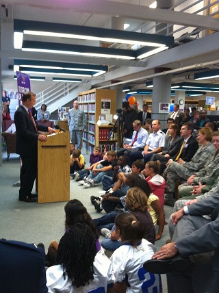 Governor Markell and Senator Carper are both committed to strengthening schools and providing Delaware students with a 21st Century education, especially as one of the first states to be awarded a prestigious Race to the Top grant from the federal government. The Governor, Senator and Colonel addressed a room full of local military students and their parents, as well as service members, and encouraged them to use this new education service to complete their homework assignments, build their confidence and improve their grades.